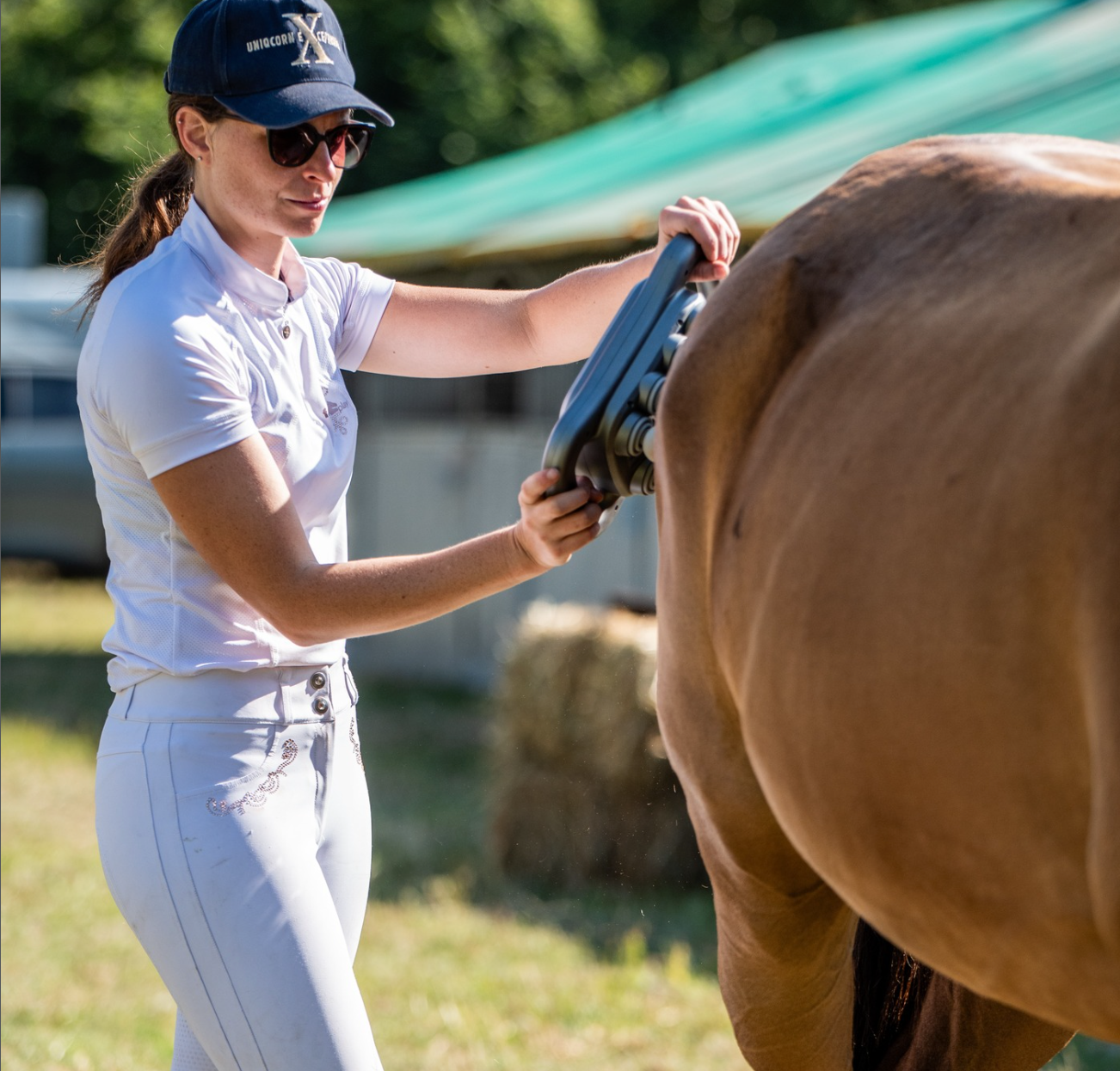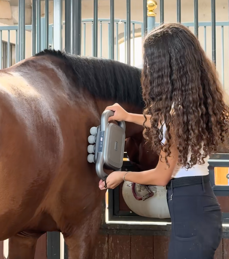 J’ai le mien depuis environ un mois et je l’utilise tous les jours sur mes deux chevaux. Dix minutes de chaque côté, et ils adorent vraiment, surtout après le cross. On voit clairement la différence le lendemain sur les deux 😊😊
