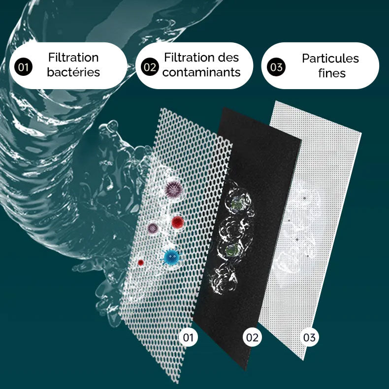Tout le monde connaît le terme « eau de source », une eau filtrée naturellement, parfois souterraine, ou provenant de rivières et de lacs, purifiée à travers des centaines de couches de roches. Ces sources naturelles sont potables grâce à une filtration assurée par les couches rocheuses. Votre cube de charbon actif fonctionne de la même manière.