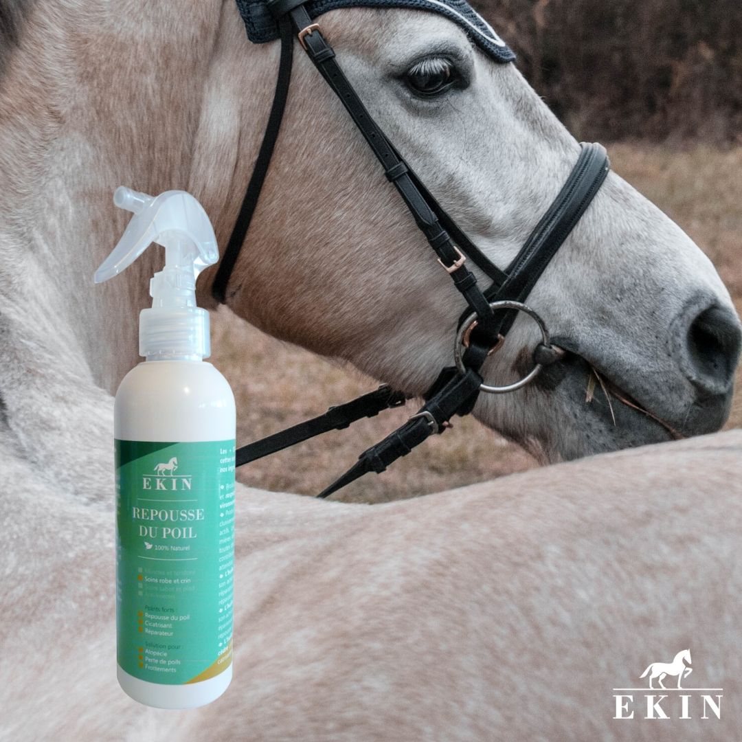 Ekin Spray repousse poil pour cheval sur ancienne blessure