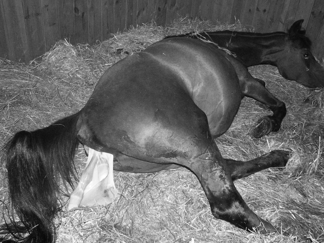 Poulinage : Mise bas imprévue, parfois avec complications.